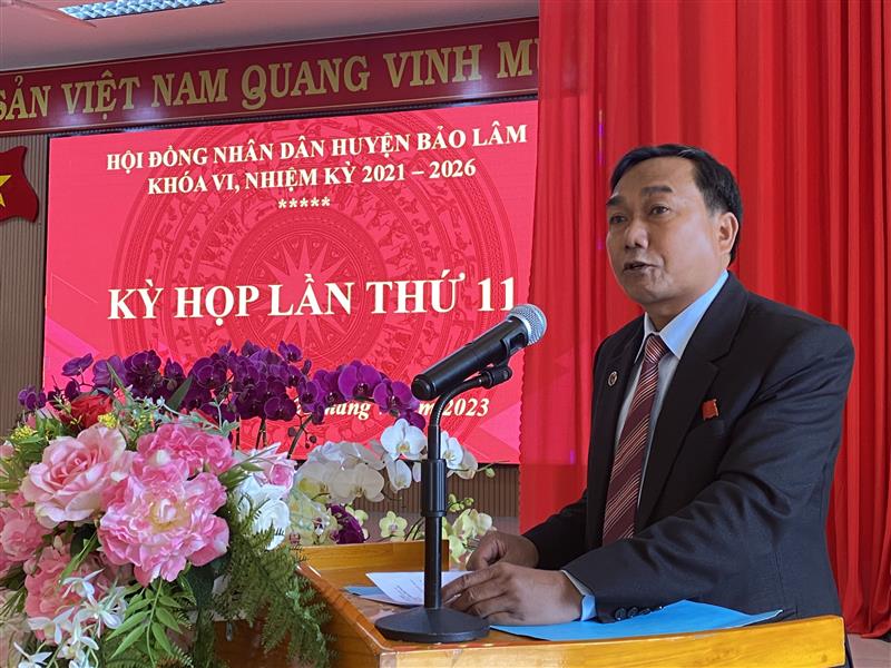 Cũng tại kỳ họp lần này, HĐND huyện xem xét thông qua 10 tờ trình về dự thảo nghị quyết gồm: Tờ trình đề nghị ban hành Chương trình hoạt động giám sát của HĐND năm 2024; dự thảo Nghị quyết về miễn nhiệm và bầu bổ sung các các chức danh thuộc thẩm quyền của HĐND huyện khóa VI, nhiệm kỳ 2021 – 2026; tờ trình về dự thảo Nghị quyết nhiệm vụ phát triển kinh tế - xã hội 6 tháng cuối năm 2023; Phương án phân bổ nguồn tăng thu và nguồn kết dư ngân sách năm 2022; Điều chỉnh dự toán chi ngân sách cấp huyện năm 2023; Bổ sung danh mục công trình kế hoạch đầu tư công trung hạn giai đoạn 2021 – 2025 nguồn ngân sách địa phương; Chủ trương thực hiện Dự án thuê hệ thống Trung tâm điều hành thông minh (IOC) huyện Bảo Lâm; Tờ trình về dự thảo nghị quyết về chủ trương đầu tư các công trình đầu tư công trình cũng như điều chỉnh chủ trương đầu tư công trình đầu tư công trên địa bàn huyện.