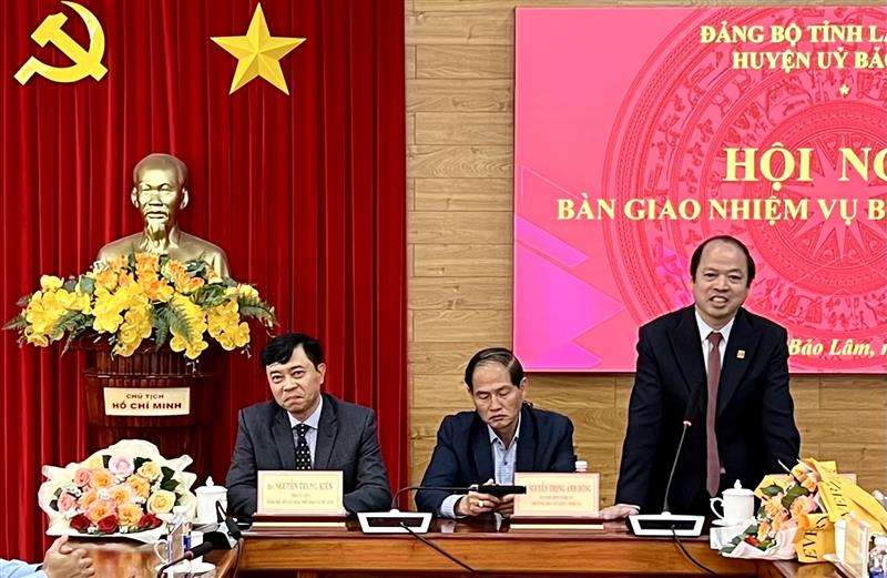 Ngày 22/3 tại Huyện Bảo Lâm, đồng chí Nguyễn Trọng Ánh Đông, Ủy viên Ban Thường vụ Tỉnh ủy, Trưởng Ban tổ chức Tỉnh ủy đã chủ trì buổi bàn giao nhiệm vụ giữa đồng chí Nguyễn Viết Vân, Tỉnh uỷ viên, Bí Huyện ủy Bảo Lâm và đồng chí Nguyễn Trung Kiên, Tỉnh uỷ viên, Giám đốc Sở Văn hóa, Thể thao và Du Lịch, nguyên Bí thư Huyện ủy Bảo Lâm. Tham dự còn có lãnh đạo Sở Văn hóa, Thể thao và Du lịch tỉnh, các đồng chí trong Ban Thường vụ Huyện ủy, Ban chấp hành Đảng bộ huyện nhiệm kỳ 2020-2025.